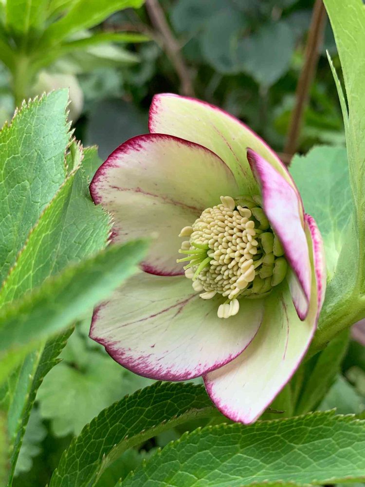 クリスマスローズ6つ目咲き始めて、葉っぱに乗せて撮影💕