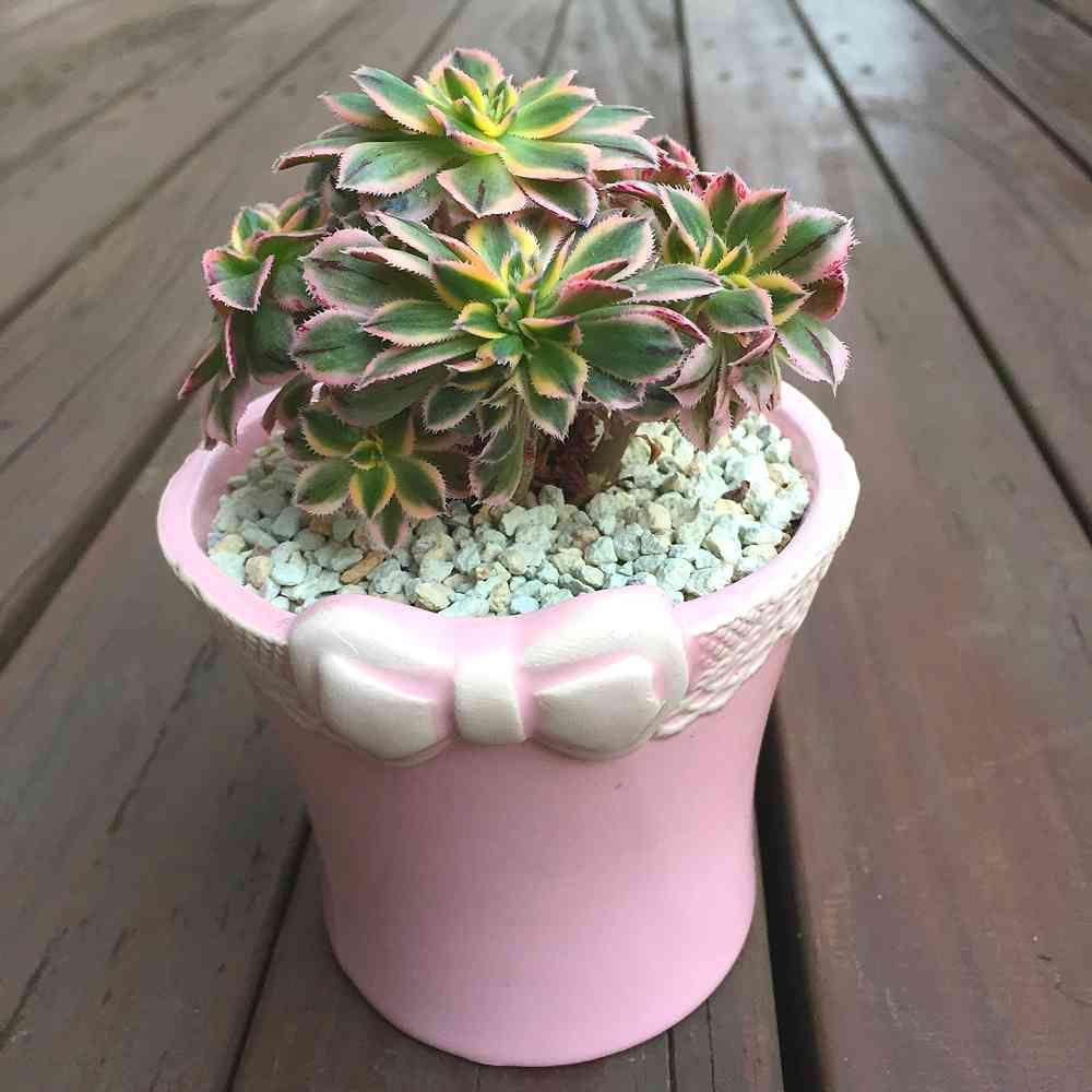 フチがピンクでとっても可愛いかったので可愛いピンクの鉢に植えてあげました🌟