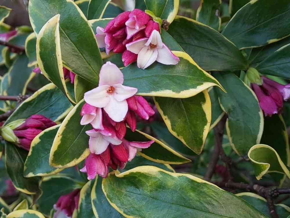 香りが強いので沈丁花かなっと思ってましたが葉がまだら模様なので、違う庭木なのかと・・・