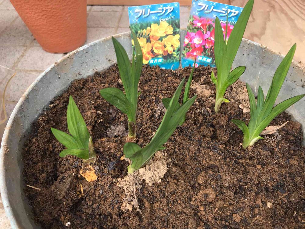秋に見つけられなかったフリージアの球根。諦めかけてたところ苗で発見!迷わずお迎えしました🥳💕