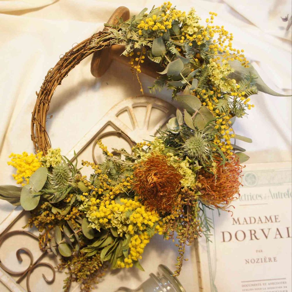 ミモザがドライなったので、リースを作りました!!