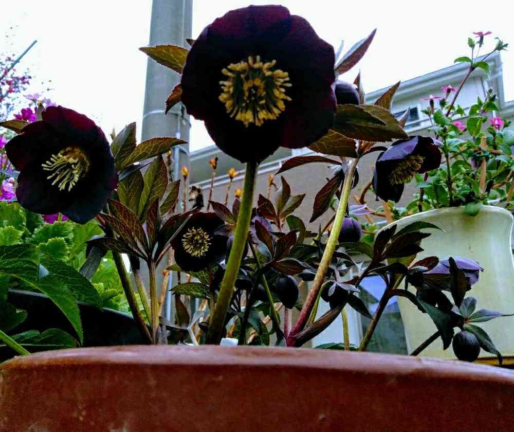 散策の通り道に有るお宅の花壇に、黒いクリスマスローズが、咲いていました。