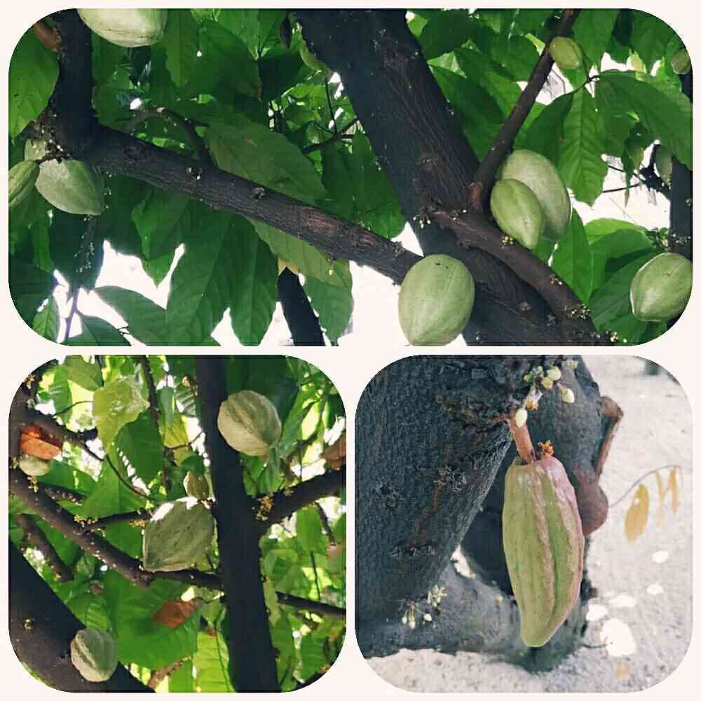 お土産のチョコレートを購入する為に専門店に行ったら、その敷地内に生えてたカカオの木です。