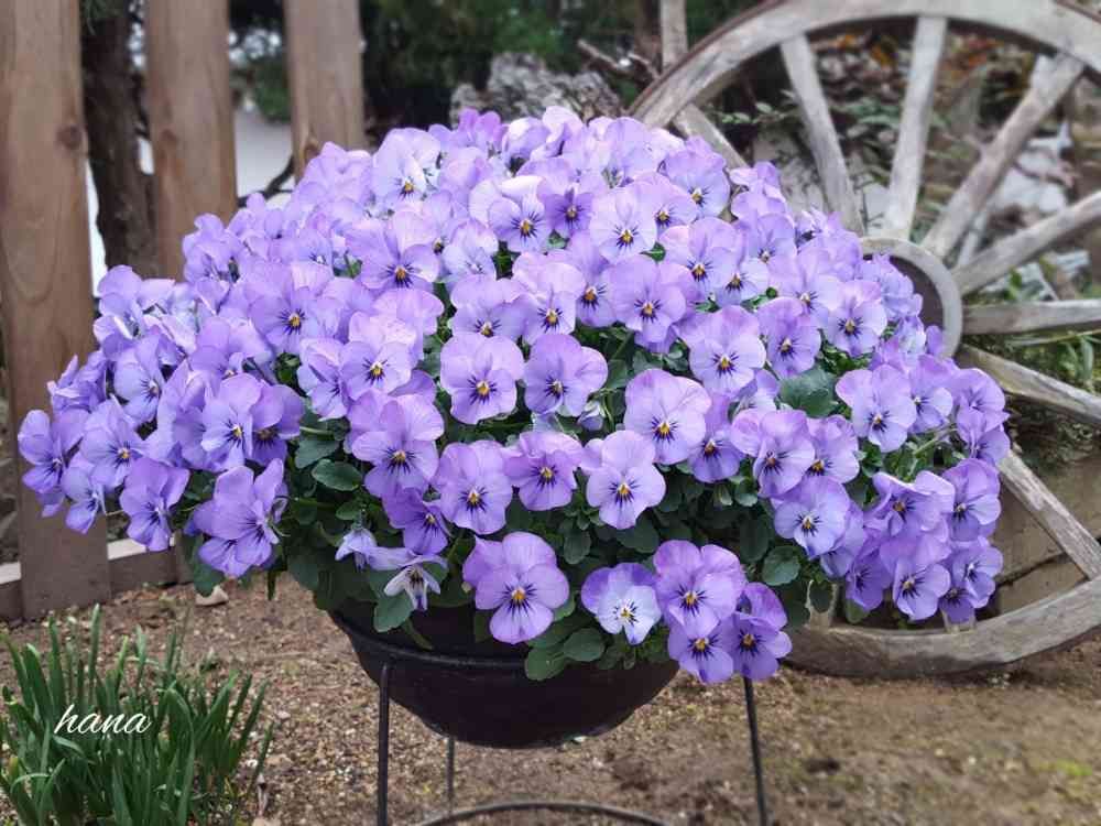 寄せ植えのビオラ元気盛り盛りですね。何株かしら?💜