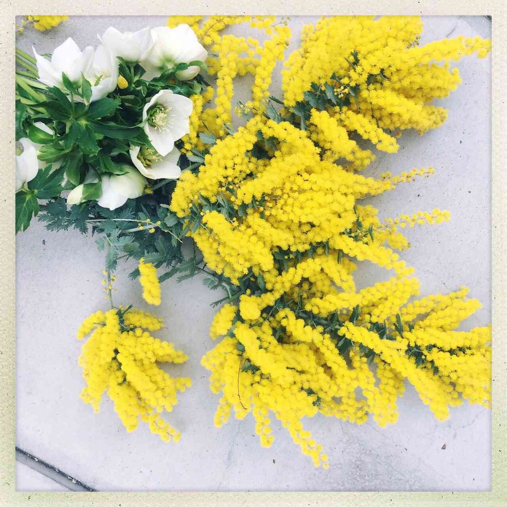 自宅の庭で収穫したミモザとクリスマスローズです。爽やか。