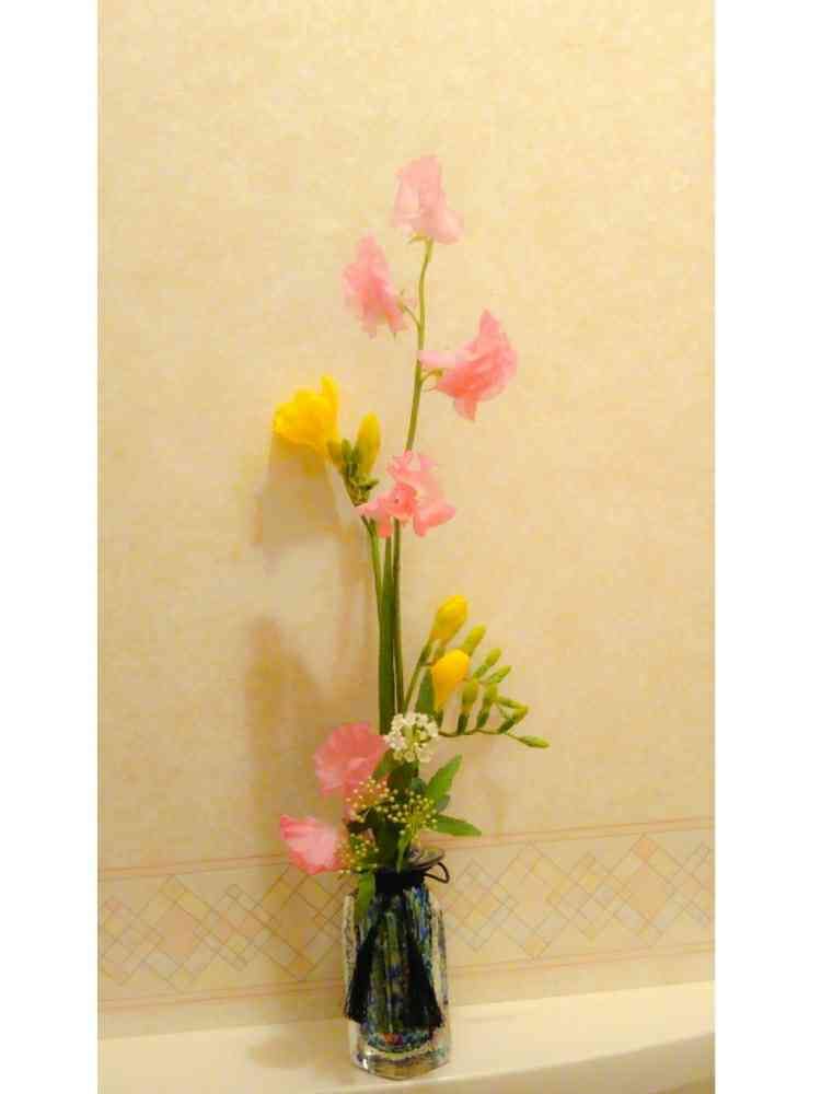 フリージアは香りが良いので『いつもトイレばかりですまんのぉ~🙏』と思いながらも、やっぱりトイレに生けてしまいます🚽