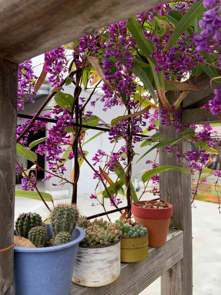 ハーデンベルギアのアーチの枠には…