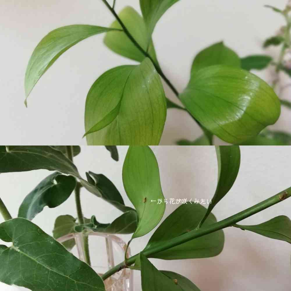 お出かけ先の花瓶に、ルスカスの存在と葉っぱの芽に 気がつくなんて!♡