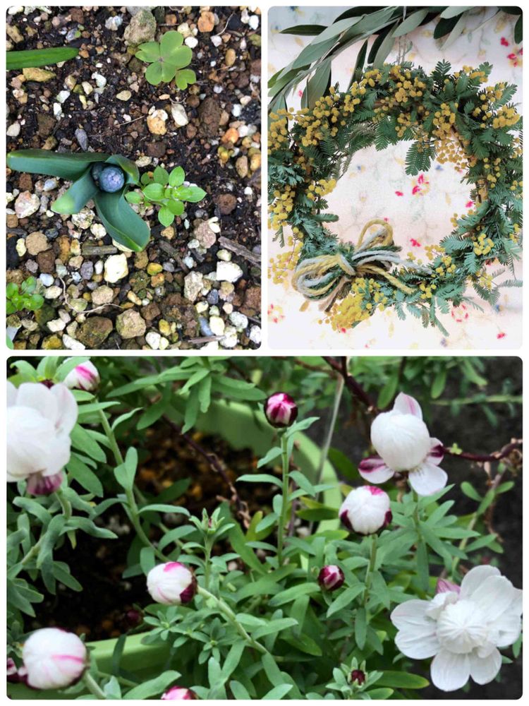 私は、オリーブの枝をクルクルにして、ミモザをさしながら針金でクルクルした🐘〰️