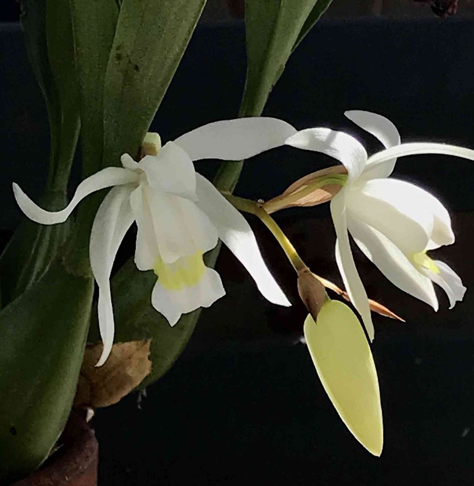ずっと前に近くの花友から”白い花好きでしょ”とラン展のお土産にもらったセロジネ。