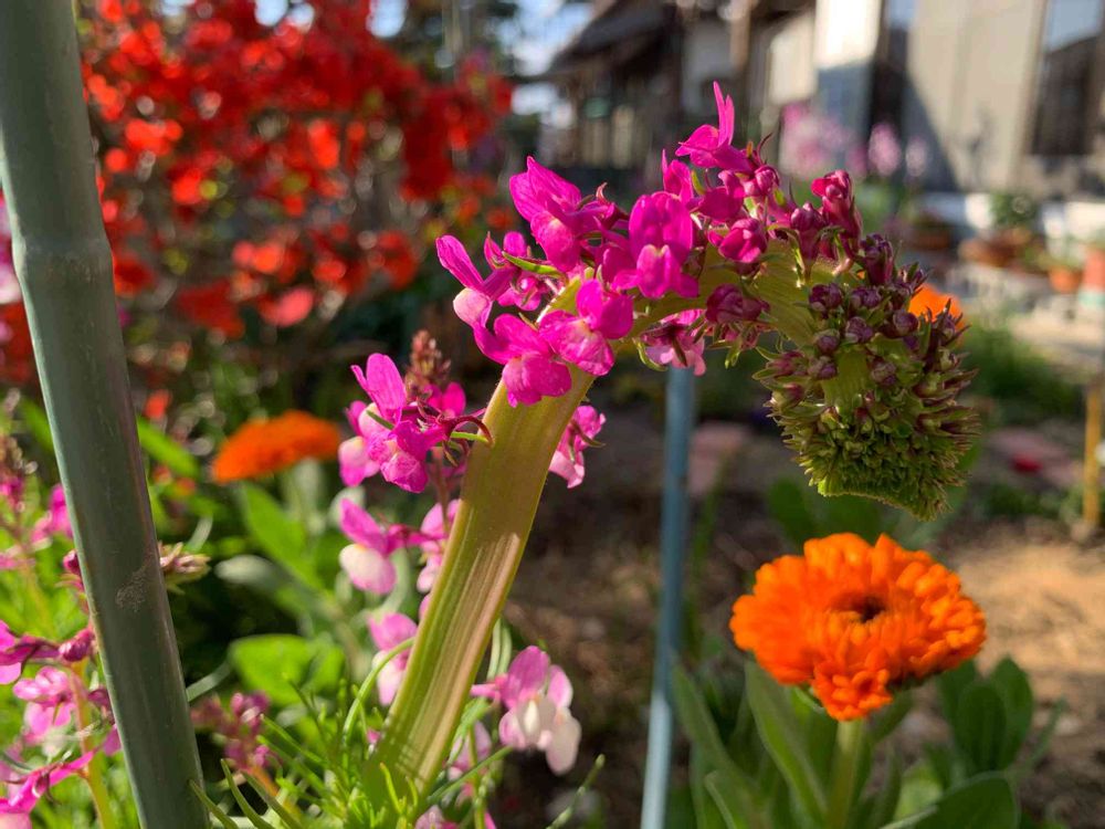 我家の庭の姫金魚草、異変が起こりました。😲茎なのか?葉なのか?解りませんが太い茎に花が咲きました。