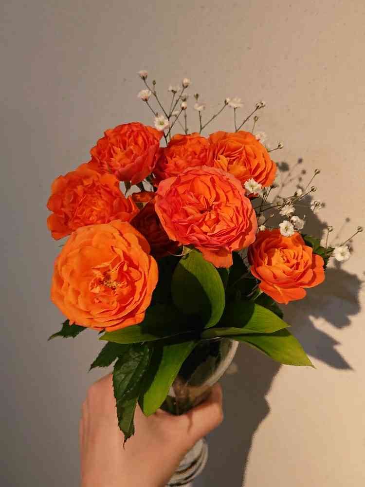コロナで嫌なニュースばかりが続くけど、オレンジのスプレーバラで元気に❤️