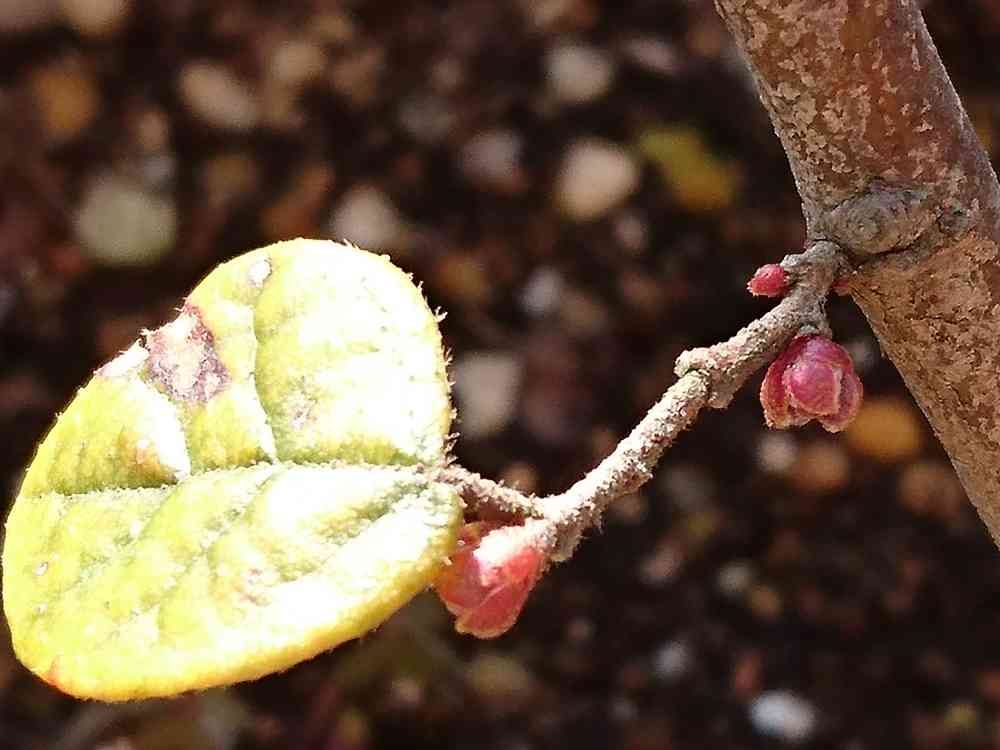 昨年ご近所さんに枝を貰って挿し木したマンサクに花芽?😍