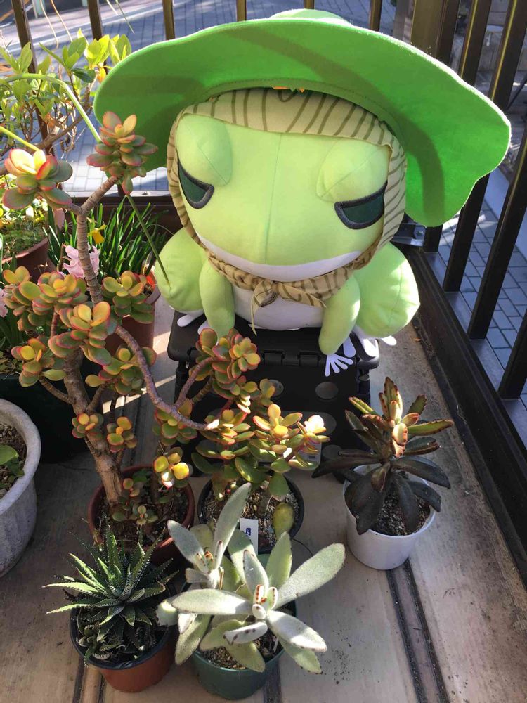 多肉植物始めてから見直して見たら前からあった多肉がこれだけありました!特に十二の巻は子供が中学の時に買ったので十年以上たってます。その割に小さいのは何年か前の猛暑で枯れかけて二、三センチの株を二つからやっとこの大きさに復活しました。( ̄^ ̄)ゞ 皆んな外に出しっぱなしでした。後ろの旅かえるは先日クレーンゲームで三千円かけて取って嬉しかったのでおまけで。(^∇^)