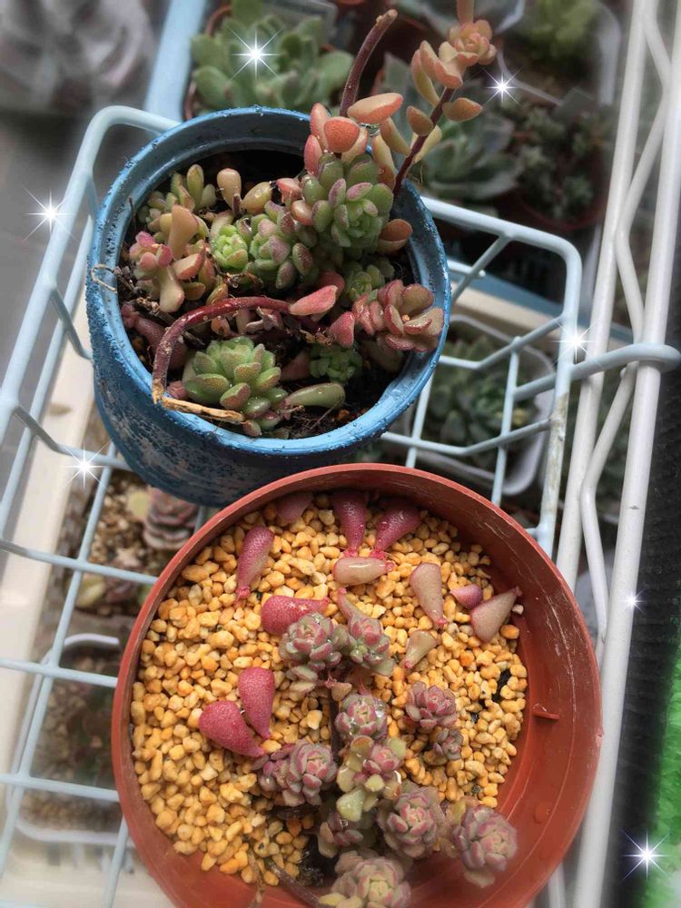 確か、茶色の鉢は葉挿しっこから育った子たちです🎵🎵