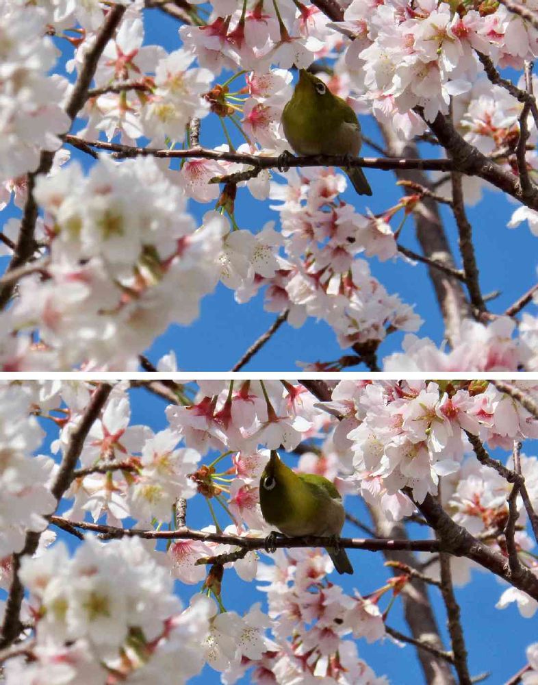 青空と桜とメジロと
