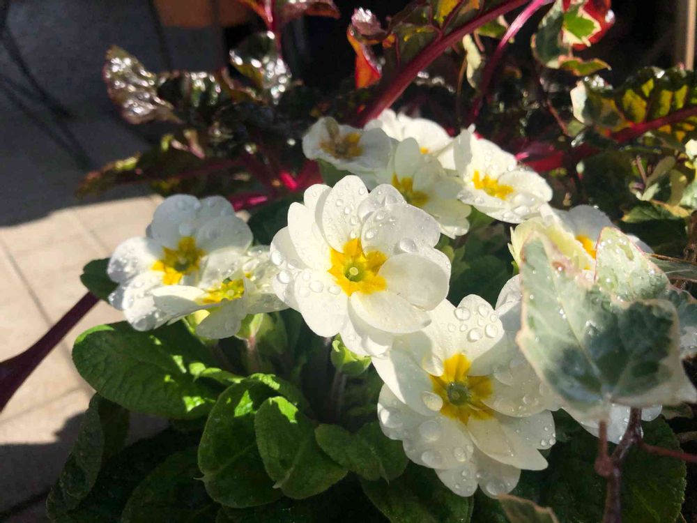 去年夏頃植えだスイスチャードが花咲かなくてそのまま残りプリムラに植え替えした寄せ植えです💚