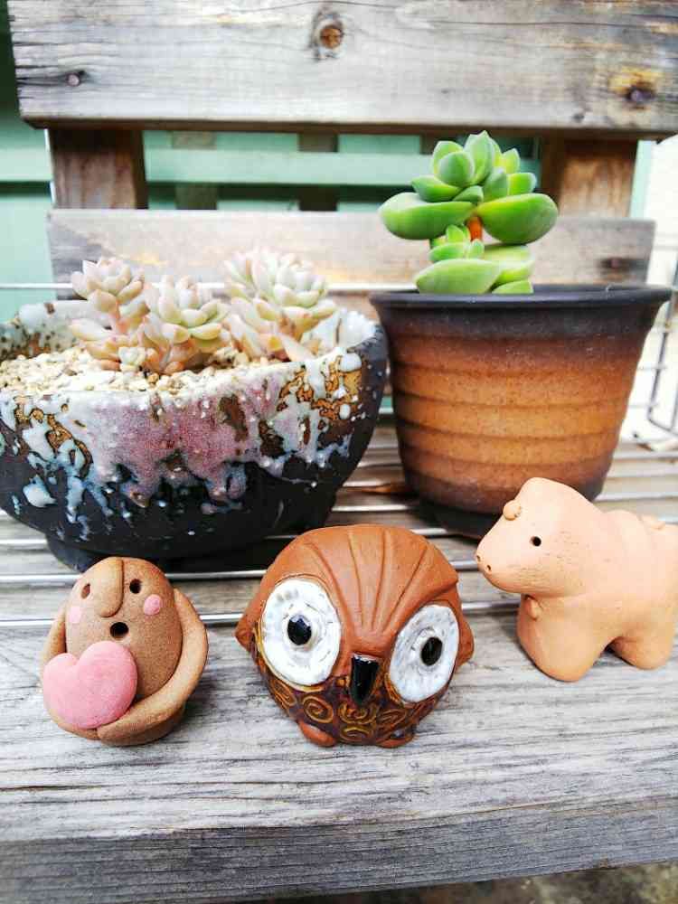 右の黒い鉢は実家からもらったものだけど、左のはこの間の鉢屋さん