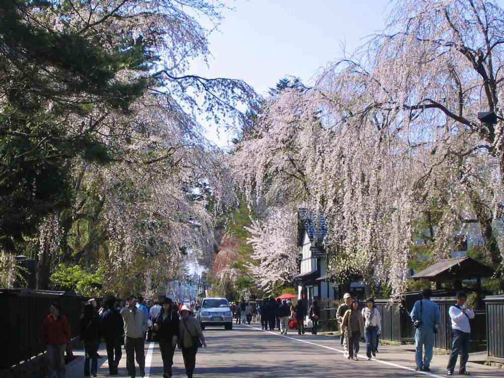 ご存知、角館の武家屋敷の枝垂れ桜、この枝垂の花色のピークに合わせるのはなかなか難しい。