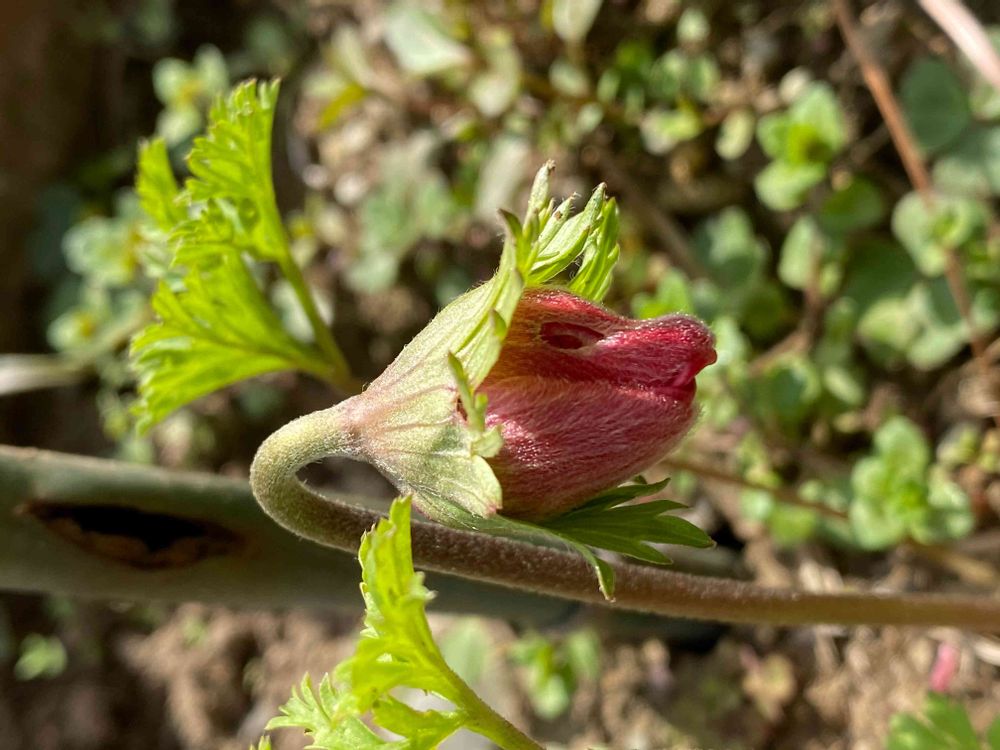 球根植えのアネモネ気がつけば蕾が付いてました😻