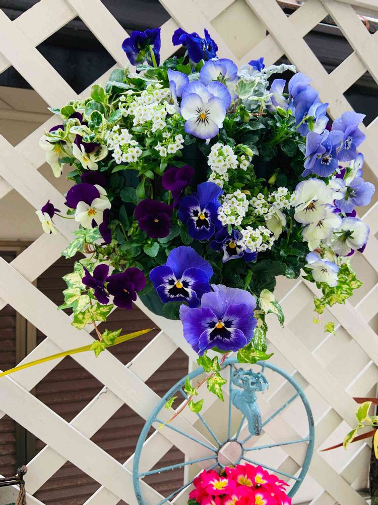 ハンギング、白とブルーのお花の組み合わせは私も好みです。センスいいな〜💙🤍