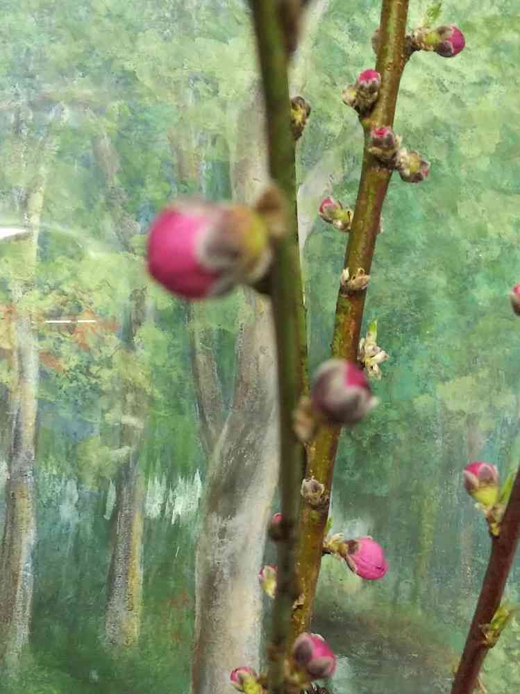 父の友達が描いた白樺林の絵の前の花モモ🍑さんでした‼️