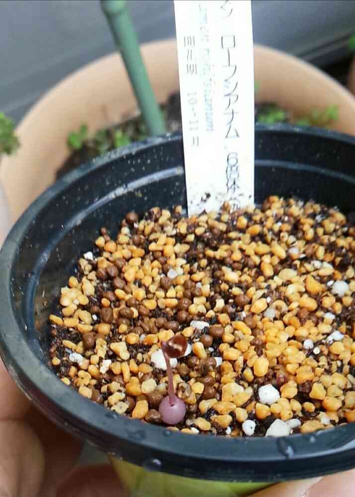 ローフシアナムの球根は紅色でした。ヘデリフォリウムは真っ白!