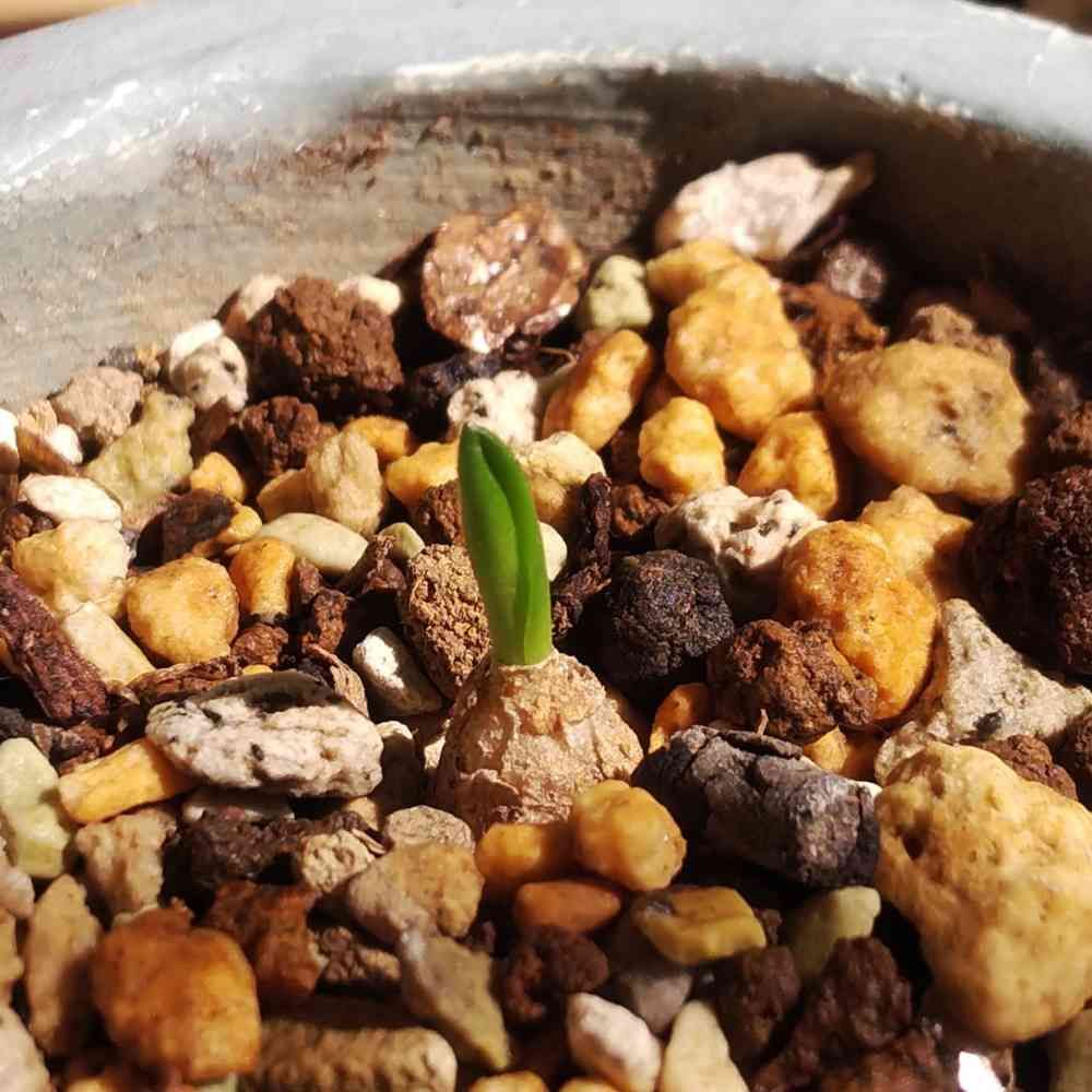 枯れたと思った実生マッソニア(二年目)。処分するつもりで隅っこに放置してたら葉が出てる🌱❗