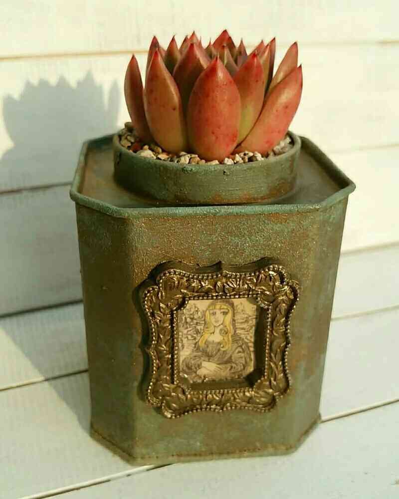 最初は、白っぽいエレガントなエケベリアにしようかな?と悩みましたが、リメ缶にも映える