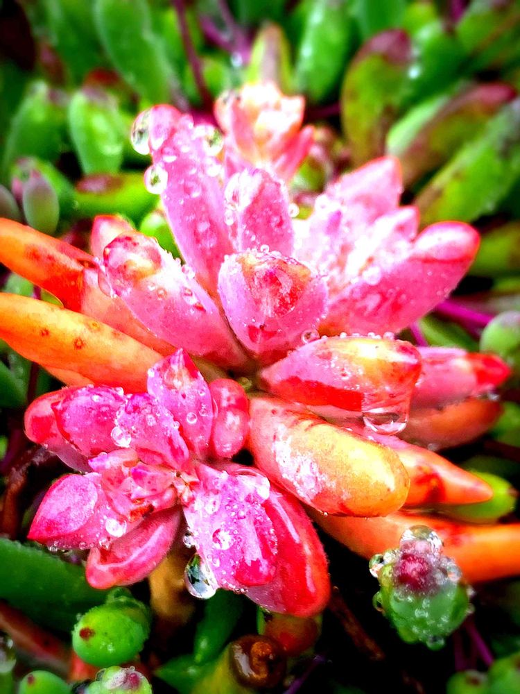 雨露を付けてキラキラと輝いておりました✨プクプクしてとっても可愛いのだけれど、知り合いから頂いたこの子の名前が分からない〜💧