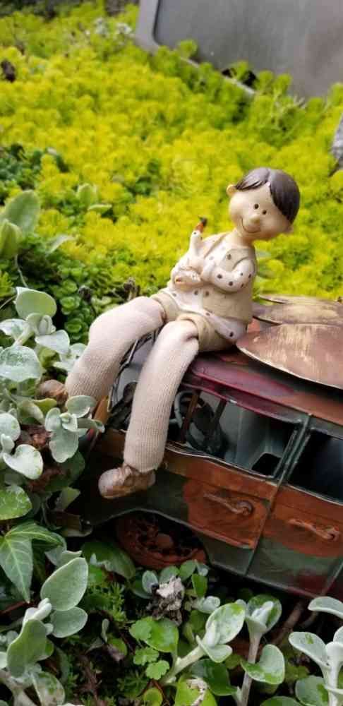 うわぁ❤セダム畑に、アンティークなブリキカーと、可愛いドール✨