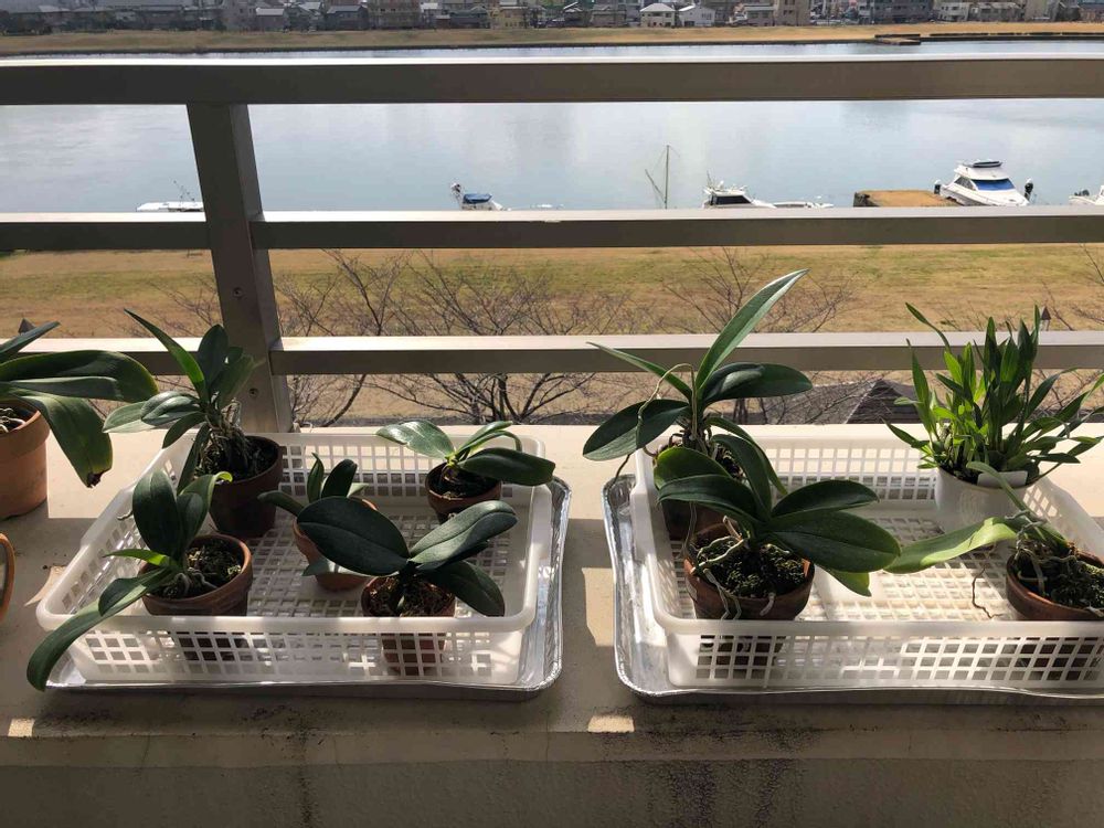 育てている蘭達15株に春の陽射しを当てました。