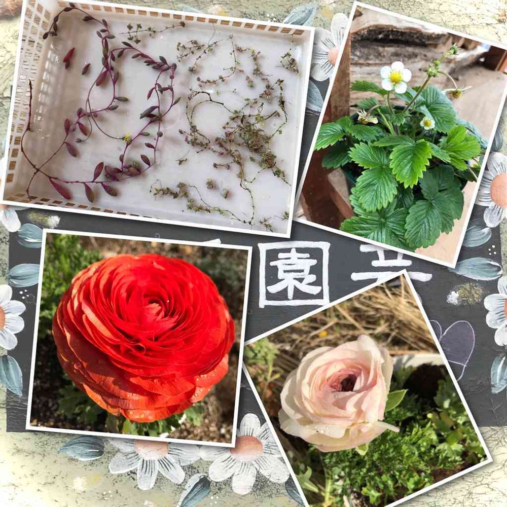 ゆみじんさんの小さな庭,イチゴ,ラナンキュラスの投稿画像