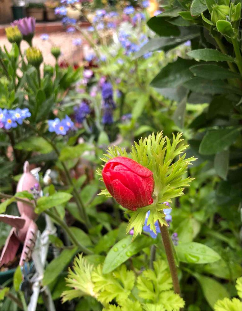 花壇に一昨年球根を植えたアネモネの蕾が膨らんでました╰(*´︶`*)╯♡