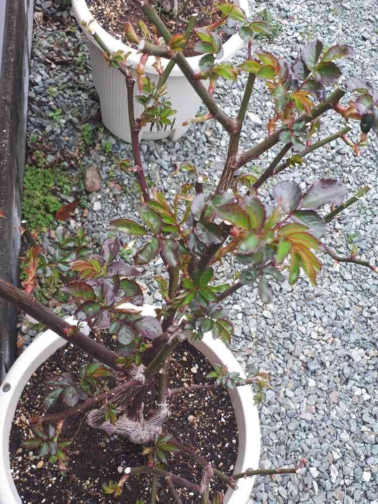 シェエラザードバラ葉がひらいてきました。殺菌材を農薬散布しときました。