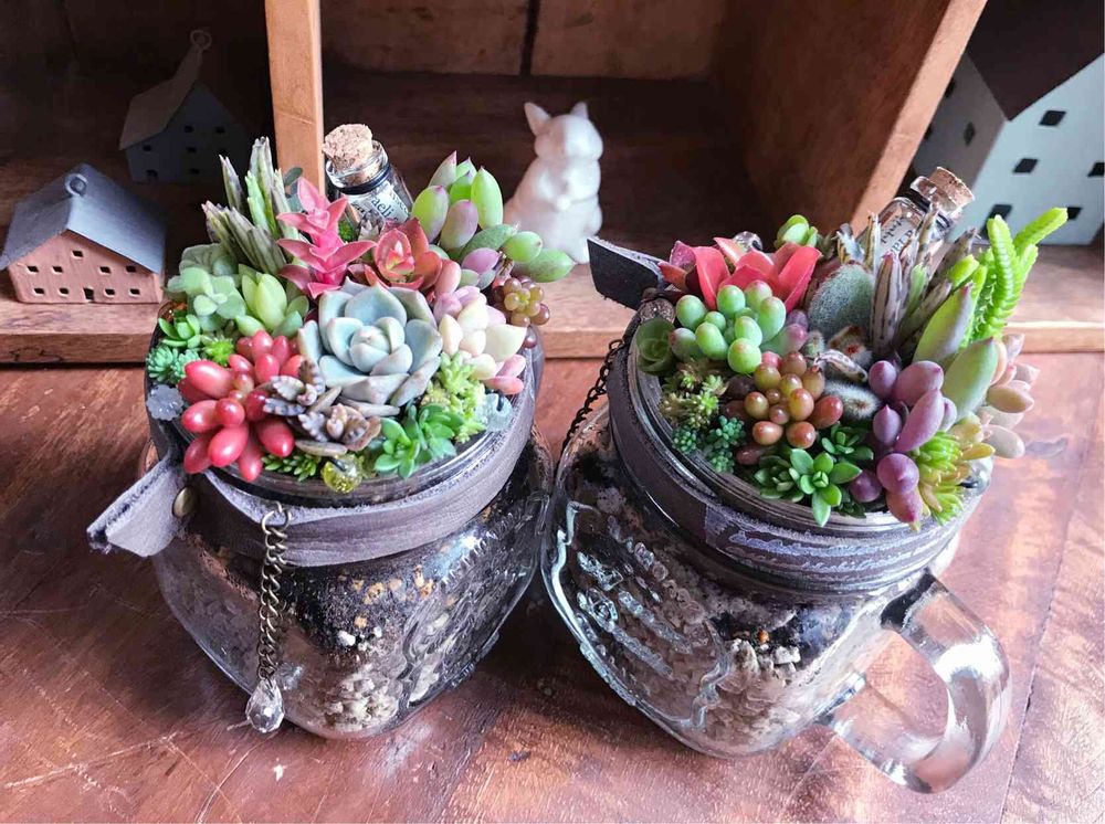 多肉植物もさることながら、カップが素敵〜⋋✿ ⁰ o ⁰ ✿