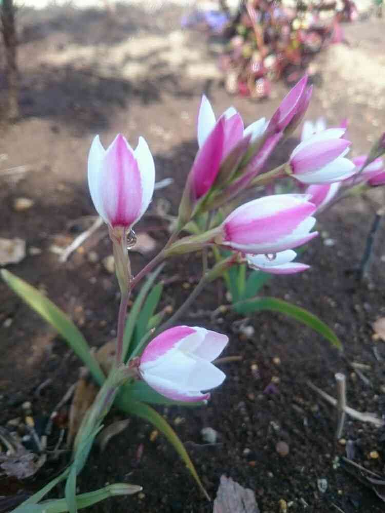 天気がいい日の午後に咲くそうです。水をまいたので、少し閉じました😅