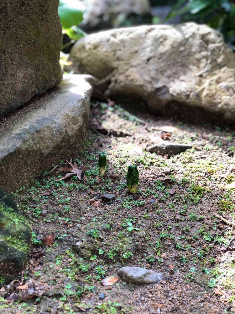 ハッカクレンが頭を出しました。今年で2年目、楽しみです。