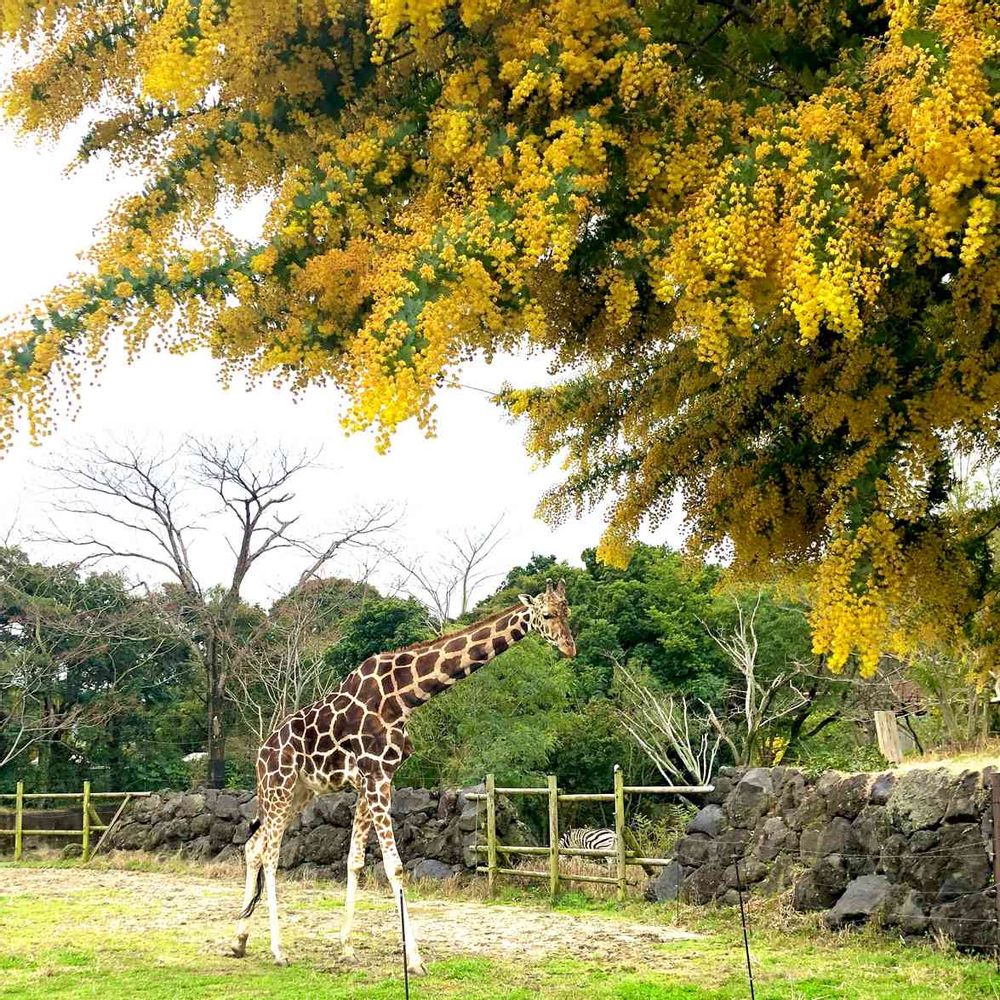 キリン🦒とミモザ💛の共演 日本じゃないみたいです😆🎶