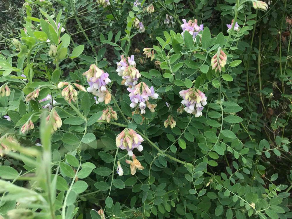 ようやくつぼみをつけ始めたマメが多い中、日当たりが良い場所のせいか、フライングして満開になったマメを見つけました。当地原産の Pacific peaです。
