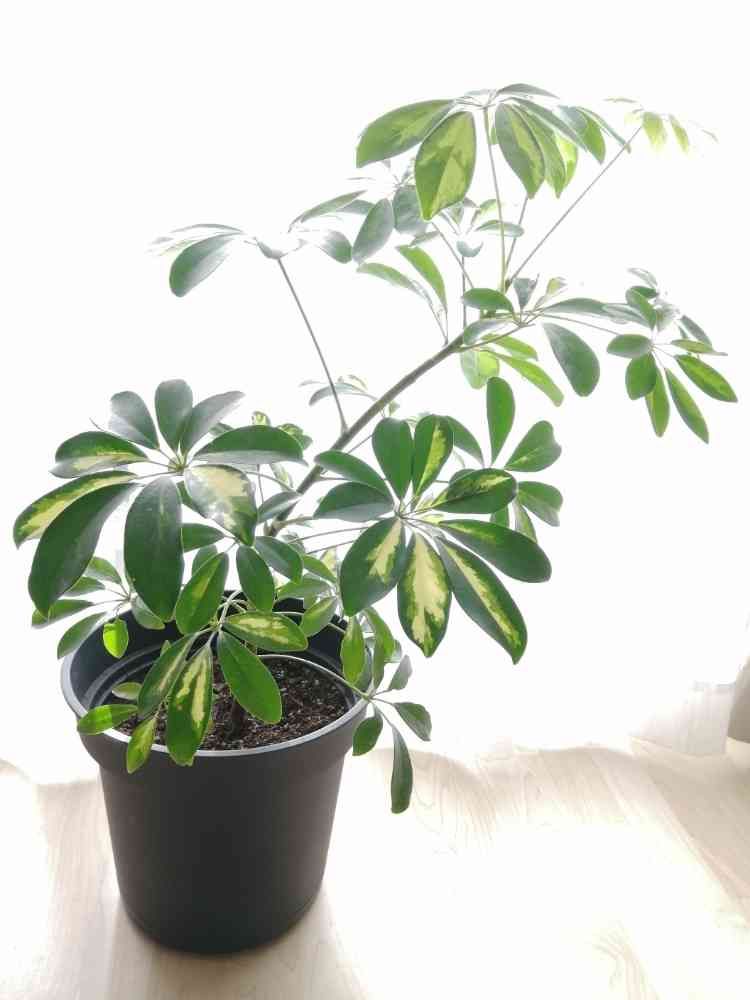 義両親から株分けしていただいた班入りカポック、新芽が次々出てきてスクスク成長中