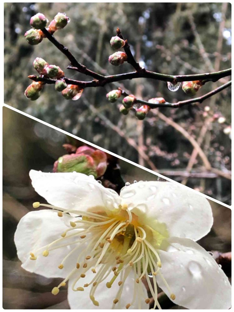 白梅,花のある暮らし,雨上がりの庭の投稿画像