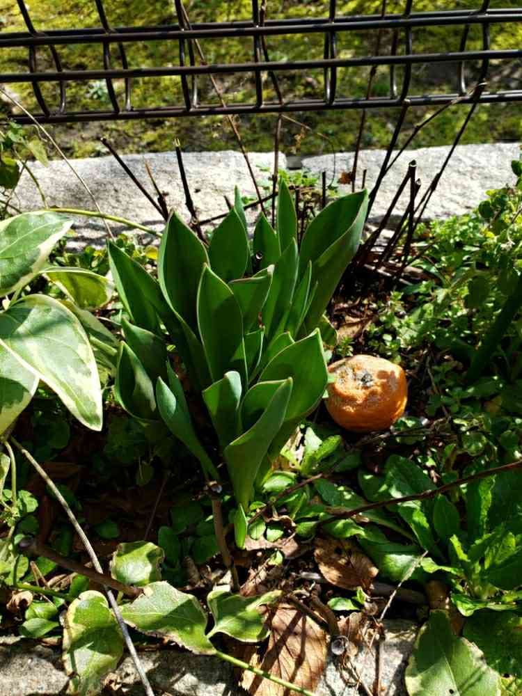 たぶん、チューリップでねぇろっか? にょきにょきと葉っぱが出てきてました。