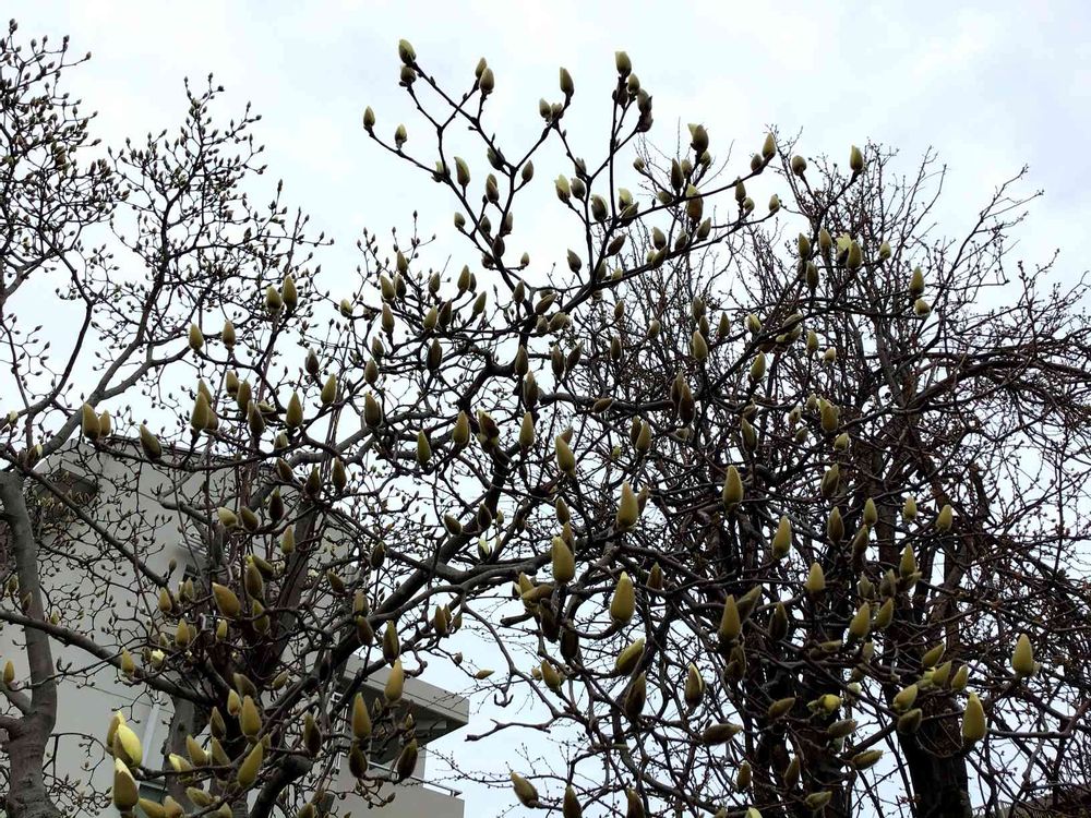 モクレンの蕾が見えてきました。もうすぐ春です。