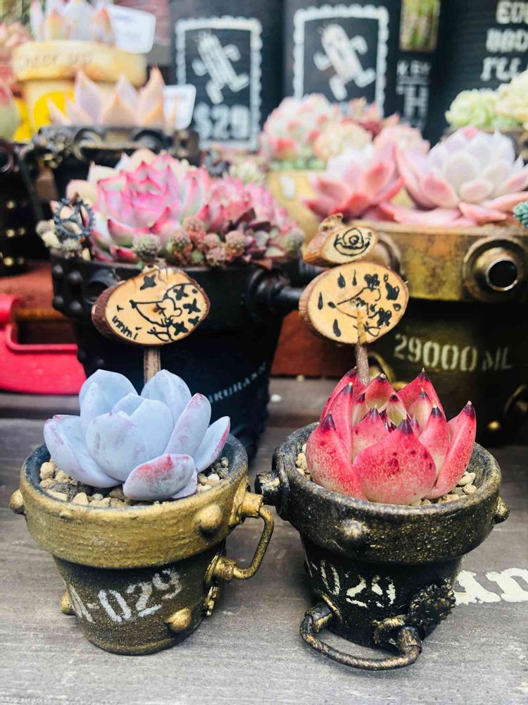 リメ鉢が紅葉した多肉さんを引き立ててて素敵ですね〜😍💖