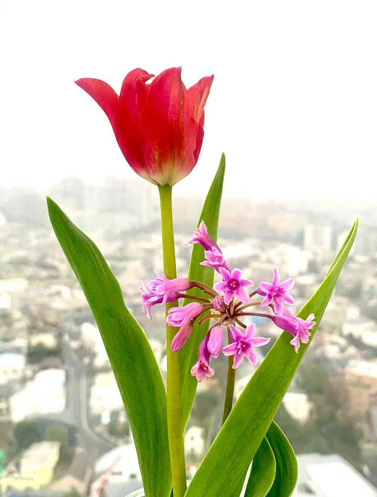 はにょほさんのデスク,チューリップ,ツルバキアの投稿画像