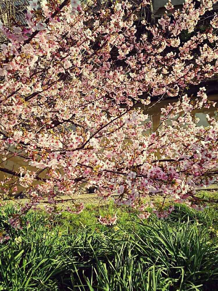 はや、川べりに桜が咲いています。春が来ました。