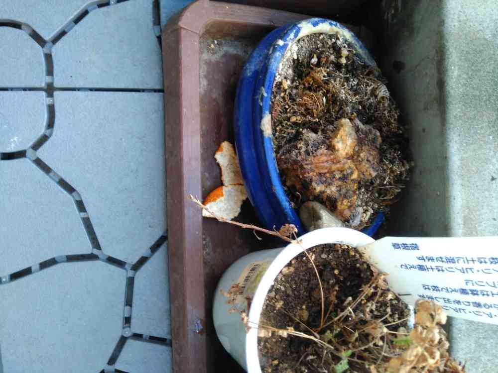 隣か、上から、ミカンの皮、ベランダに投げつけられてた。