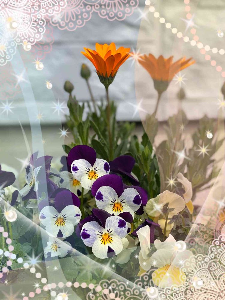 優し〜い寄せ植え🧡🤍💜🧡🤍💜