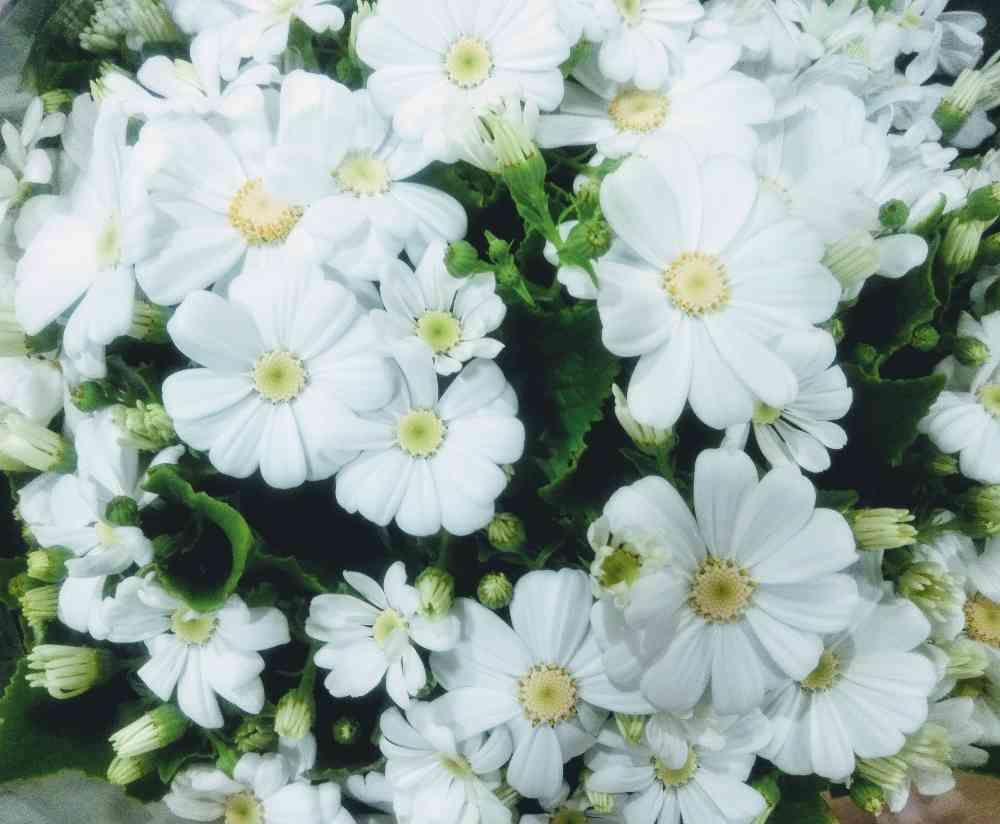 スーパーの花屋さんに置かれていた、白いサイネリアです。
